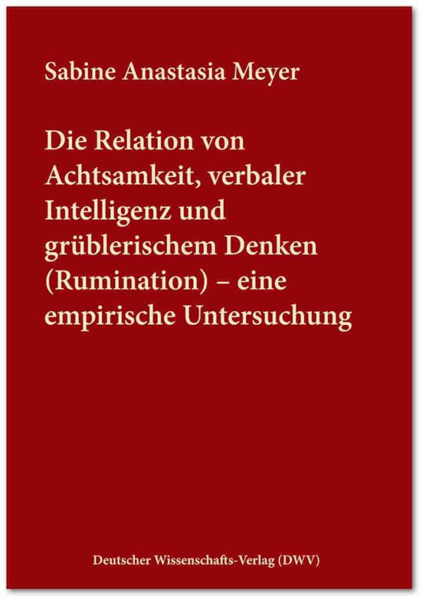Product ID: 11377 ISBN: 9783868881196 Kategorien: Psychiatrie, Psychosomatik und Psychologie, Pädagogik Schlüsselworte: Achtsamkeit, Intelligenz, Rumination, Grübeln, grüblerisches Denken, empirische Untersuchung Zielgruppe: Studenten, Wissenschaftler, Psychologen Marke: Meyer, Sabine Anastasia